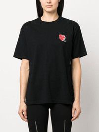 graphic-print cotton T-shirt black cotton graphic print at the chest graphic print to the rear drop shoulder crew neck short sleeves straight hem Imported Composition Cotton 100% SIZE & FIT Model measurements Height 5 ft 9 in(1.76 m) Bust/Chest 33.07 in(84 cm) Hips 38.58 in(98 cm) Waist 24.8 in(63 cm) FittingInformation This piece fits true to size. We recommend you get your regular size Cut for a loose fit Made with a mid-weight fabric Washing instructions Machine Wash