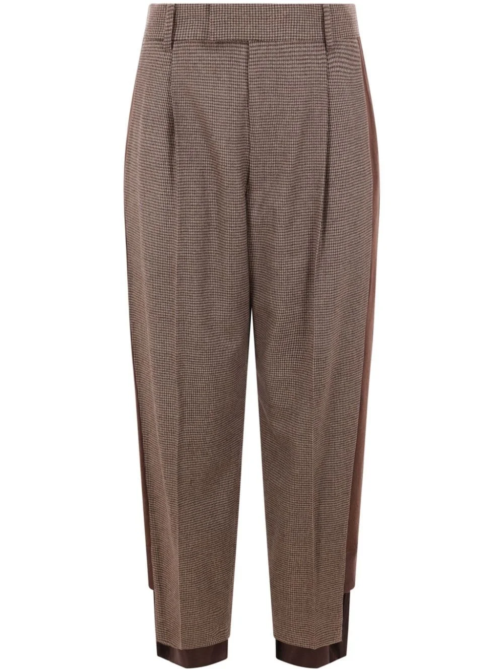 houndstooth-pattern trousers Highlights - Brown - Wool blend - Panelled design - Houndstooth pattern - Hook and zip fly fastening - Belt loops - Pleat detailing - Pressed crease - Two side slash pockets - Rear jetted pocket - Rear flap pocket - Tapered leg Imported Composition Outer: Cotton 100%, Wool 98%, Polyurethane 2% Lining: Cupro 100%