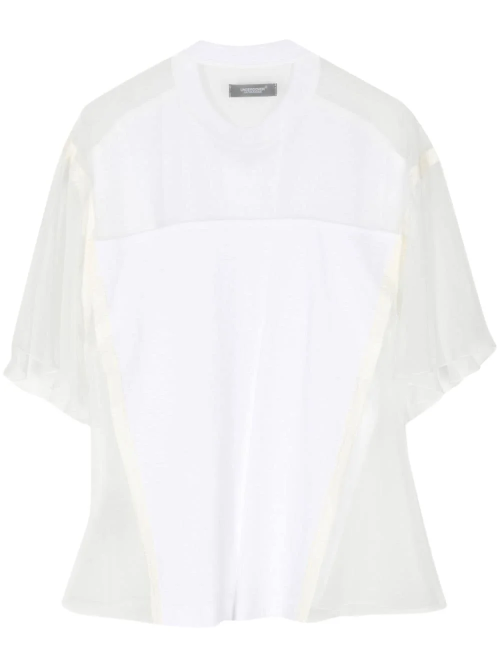 layered cotton T-shirt Highlights - White - Cotton - Layered design - Mesh panelling - Crew neck - Drop shoulder - Short sleeves - Curved hem Imported Composition Sleeve: Polyester 100% Front: Cotton 100%