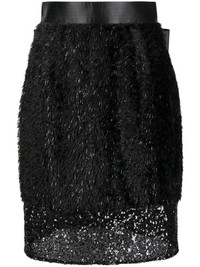 layered faux-fur pencil skirt Highlights - Black - Layered design - Faux-fur detailing - Sequin detailing - Bow detailing - Metallic threading - High-waisted - Rear zip fastening - Above-knee length Imported Composition Lining: Polyester 100% Outer: Polyester 100% SIZE & FIT Model measurements Height 5 ft 11 in(1.8 m) Bust/Chest 31.49 in(80 cm) Hips 36.61 in(93 cm) Waist 24.4 in(62 cm) FittingInformation This midi-length skirt is intended to be worn high on the waist Made from a midweight non-stretch fabric This piece fits true to size – take your usual size Washing instructions Dry Clean Only