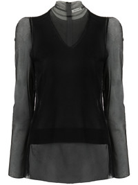 layered high-neck sheer top Highlights - Black - Layered design - Transparent panel detail - High neck - Long sleeves - Straight hem Imported Composition Inner: Rayon 80%, Polyester 20% Outer: Cotton 100% SIZE & FIT Model measurements Height 5 ft 9 in(1.75 m) Bust/Chest 31.88 in(81 cm) Hips 35.03 in(89 cm) Waist 23.22 in(59 cm) FittingInformation Designed for a slim fit that sits just away from the body offering a close yet comfortable fit Made from a lightweight non-stretch fabric, this piece offers minimal elasticity when worn This piece fits true to size – take your usual size Washing instructions Dry Clean Only