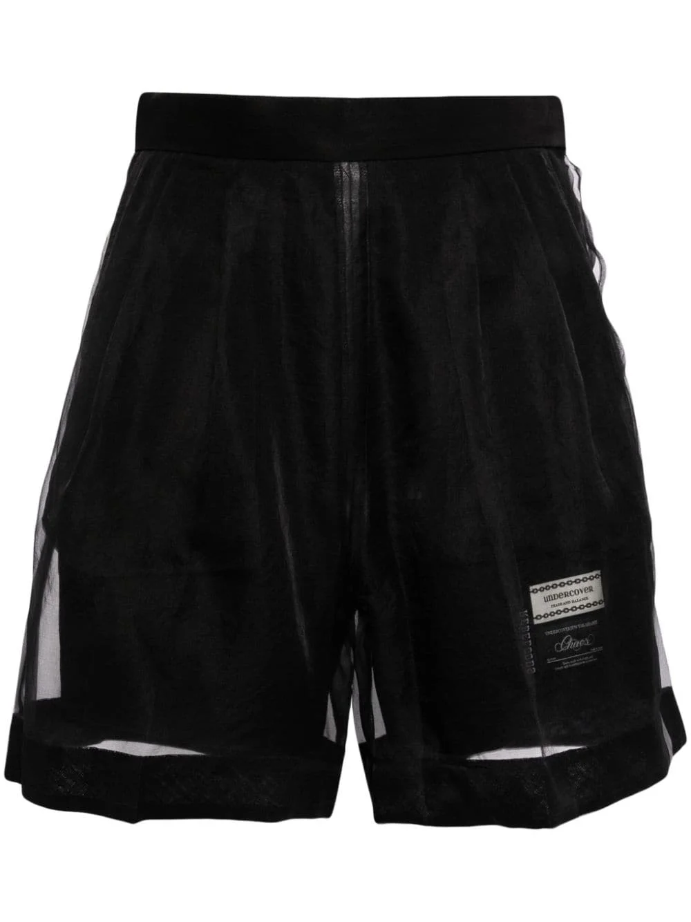 tulle-detail silk shorts Highlights - Black - Silk - Tulle overlay - Logo patch to the front - Logo patch to the rear - Rear patch pocket - Rear welt pocket - Straight hem Imported Composition Front: Rayon 100% Inner: Silk 100%