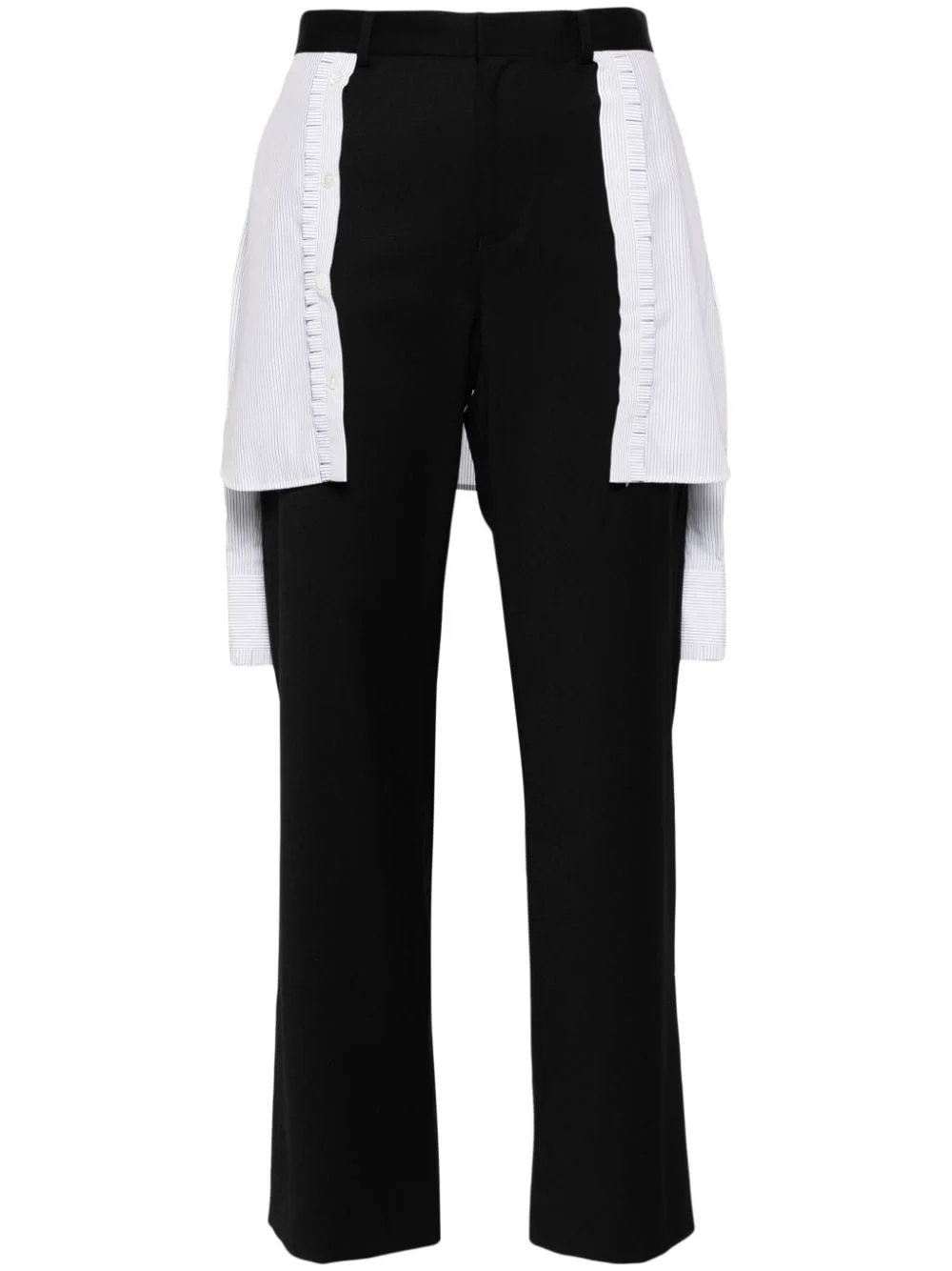 layered wool-blend trousers Highlights - Black - Wool blend - Layered design - Stripe print - Belt loops - Straight leg - Concealed front fastening - Straight hem Imported Composition Polyester 57%, Wool 37%, Polyurethane 6% SIZE & FIT Model measurements Height 5 ft 9 in(1.76 m) Bust/Chest 29.13 in(74 cm) Hips 33.07 in(84 cm) Waist 22.83 in(58 cm) FittingInformation Designed for a straight-leg fit, these trousers allow for a close fit at the waist and an unrestricted, comfortable fit over the leg Cropped in length Made from a midweight non-stretch fabric This piece fits true to size – take your usual size