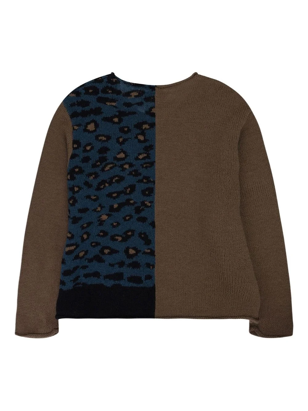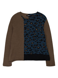 leopard-jacquard sweater Highlights - Walnut brown - Leopard pattern - Panelled design - Crew neck - Long sleeves - Rolled trim Imported Composition Wool 100%