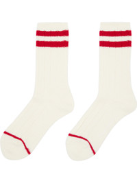 Pair of calf-high rib-knit socks · Stripes at cuffs · Logo printed at sole Supplier color: Off-white 50% acrylic, 38% cotton, 9% nylon, 3% wool. Made in Japan 252414F076000