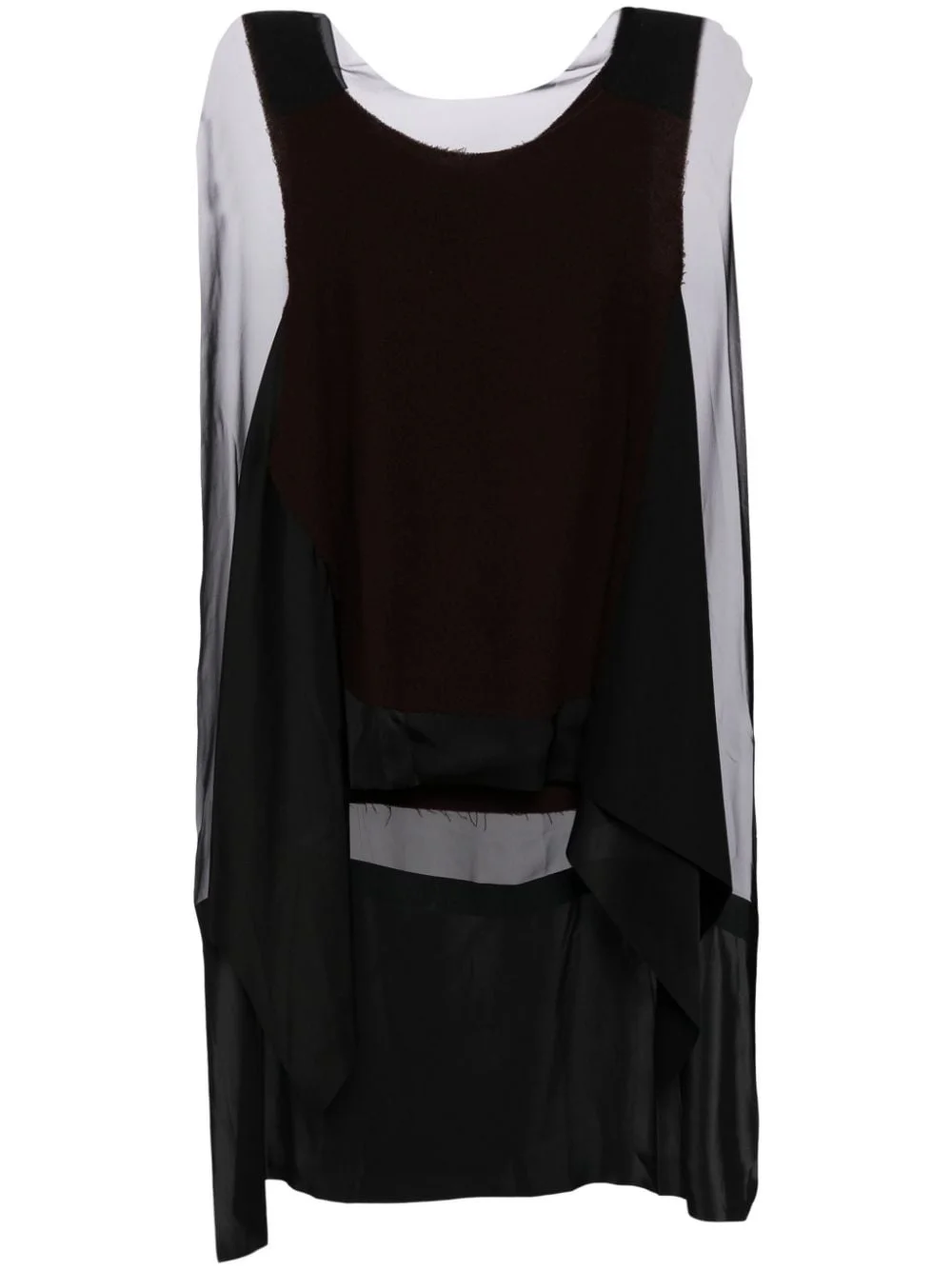 panelled vest Highlights - Dark brown/black - Wool blend - Knitted construction - Semi-sheer construction - Panel detailing - Draped detailing - Crew neck - Sleeveless Imported Composition Wool 100%