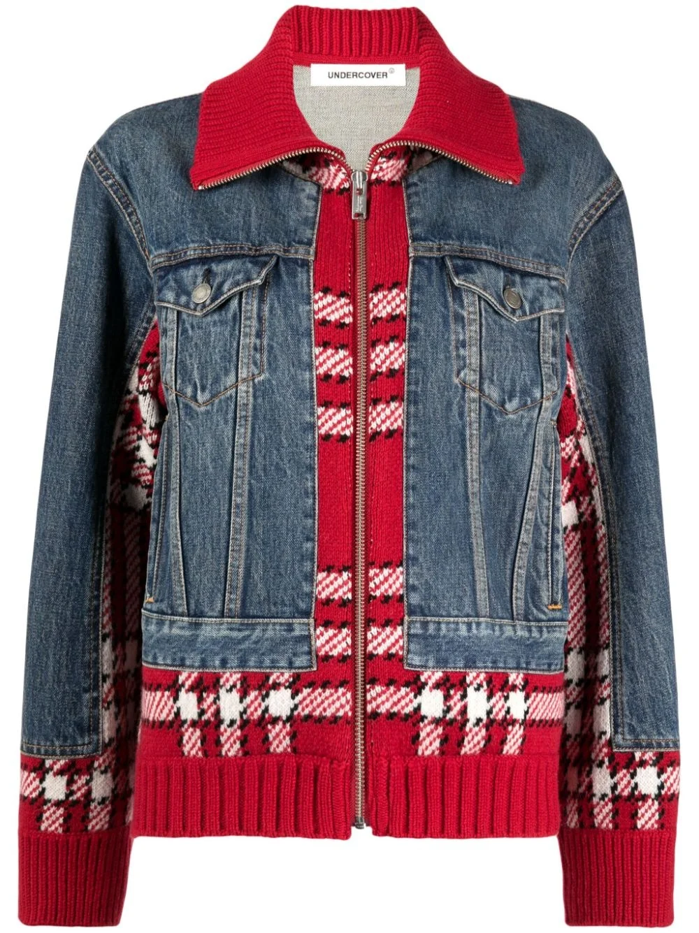 panelled-design cotton jacket Highlights - Indigo blue/cardinal red - Cotton - Panelled design - Knitted panels - Pointed flat collar - Front zip fastening - Two chest patch pockets - Long sleeves - Ribbed cuffs and hem - Straight hem Imported Composition Cotton 100% SIZE & FIT Model measurements Height 5 ft 10 in(1.77 m) Bust/Chest 31.49 in(80 cm) Hips 35.43 in(90 cm) Waist 25.19 in(64 cm) FittingInformation Designed to be unstructured, offering a loose fit throughout Made with a heavyweight knit, this piece offers some stretch This piece fits true to size – take your usual size Washing instructions Dry Clean Only