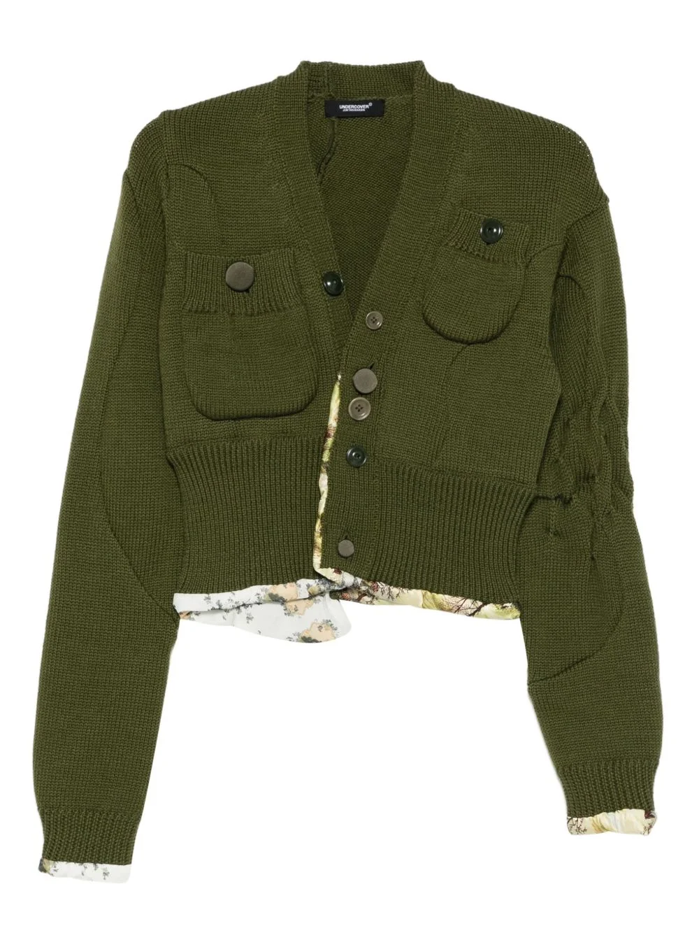 printed-trim cardigan Highlights - Khaki - Button fastening - Patch pockets Imported Composition Wool 100% Washing instructions Read Manufacturer Guidelines