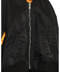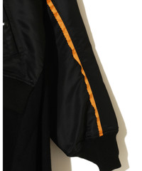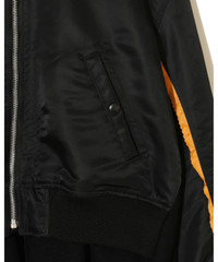 -Nylon twill MA-1 jacket -Cashmere blend wool stole layered design -Welt pocket on the front MATERIAL SURFACE1: 100% NYLON SURFACE2: 90% WOOL,10% CASHMERE SURFACE3: 62% SILK,38% POLYESTER SURFACE4: 100% POLYESTER RIB: 70% ACRYLIC, 30% WOOL