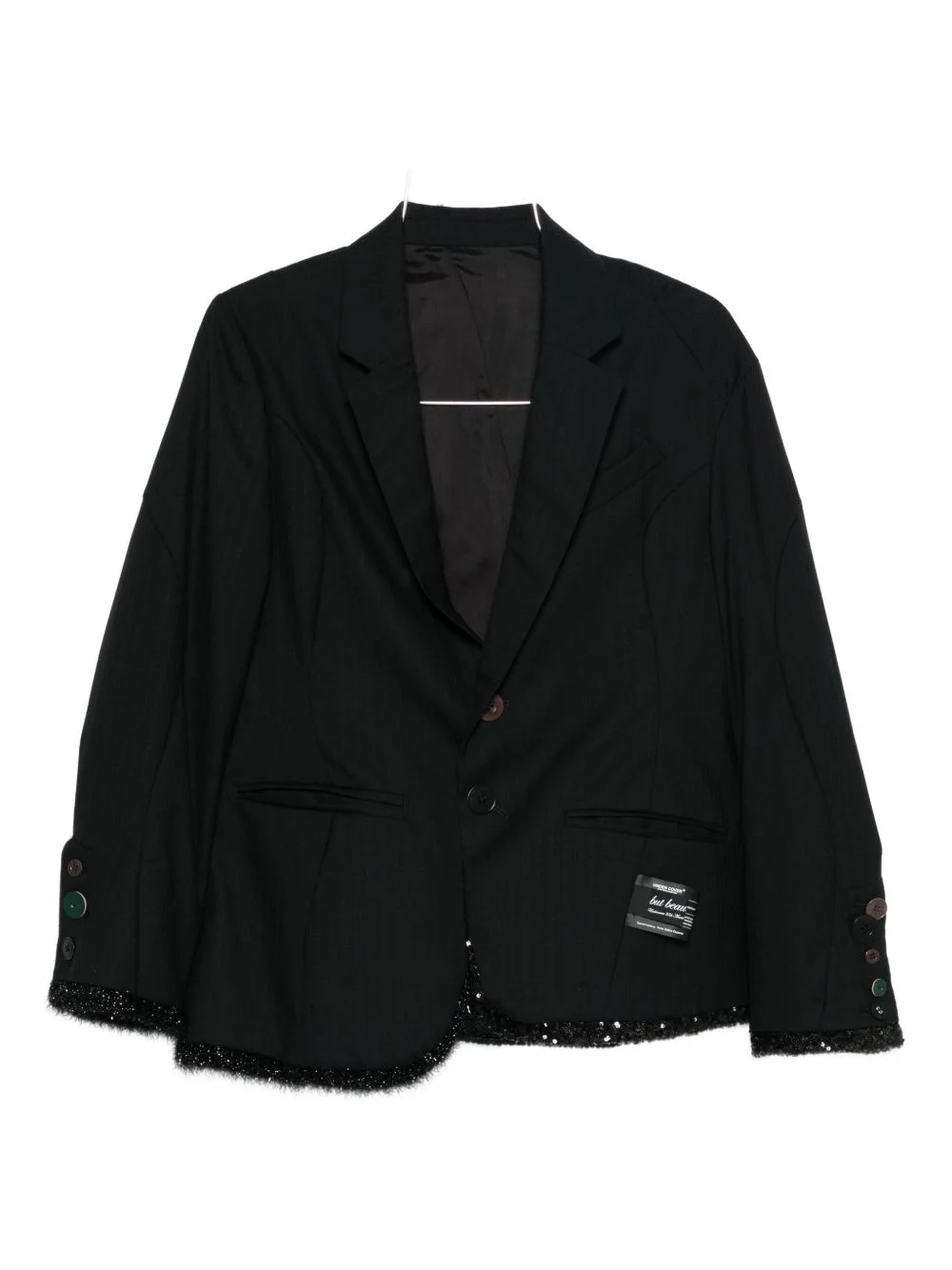 sequin-embellished blazer Highlights - Black - Front button fastening - Front jetted pockets - Sequin embellished panels - Buttoned cuffs Imported Composition Outer: Wool 100%, Polyester 100%, Nylon 100% Lining: Polyester 100%, Cupro 100% SIZE & FIT Model measurements Height 5 ft 8 in(1.73 m) Bust/Chest 29.92 in(76 cm) Hips 33.07 in(84 cm) Waist 23.22 in(59 cm)