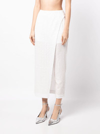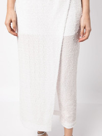 sequin-embellishment cropped trousers Highlights - White - Sequin embellishment - Wrap design - High waist - Cropped - Partial lining Imported Composition Polyester 100% SIZE & FIT Model measurements Height 5 ft 9 in(1.76 m) Bust/Chest 31.1 in(79 cm) Hips 35.03 in(89 cm) Waist 24.4 in(62 cm) FittingInformation Designed for a slim fit, these trousers offer a close fit at the waist, allowing a comfortable close fit and some movement over the leg Made from a midweight non-stretch fabric This piece fits true to size – take your usual size