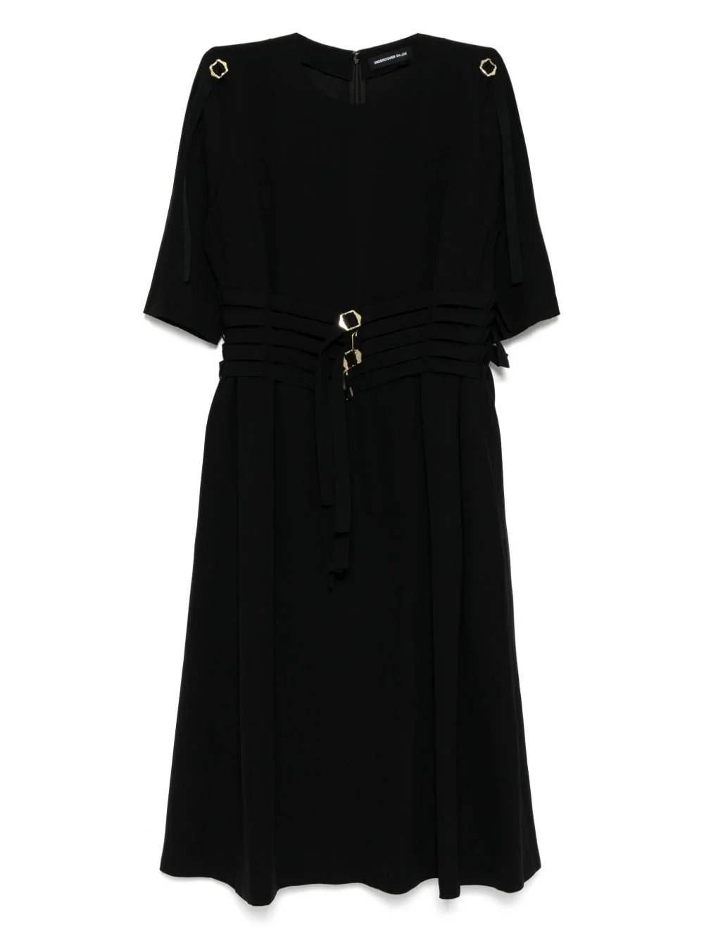short-sleeved dress Highlights - Black - Concealed rear hook and zip fastening - Multi buckle-fastening straps - Two side inset pockets Imported Composition Rayon 67%, Cupro 17%, Polyester 16% SIZE & FIT Model measurements Height 5 ft 9 in(1.76 m) Bust/Chest 31.1 in(79 cm) Hips 35.03 in(89 cm) Waist 24.4 in(62 cm) FittingInformation Designed for a close fit at the chest and waist with a loose fit at the hip Made from a midweight non-stretch fabric