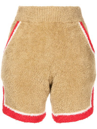 side-stripe towelling shorts Designed in a high-waist silhouette, these cotton-blend shorts from Undercover boast a comfortable towelling construction. Detailed with red and white side stripes, the beige pair is finished with elasticated trims for ultimate relaxation. Imported Composition Cotton 77%, Nylon 23% SIZE & FIT Model measurements Height 5 ft 9 in(1.76 m) Bust/Chest 29.13 in(74 cm) Hips 33.07 in(84 cm) Waist 22.83 in(58 cm) FittingInformation This piece fits true to size. We recommend you get your regular size Designed to be fitted at the waist and hips, loose over the leg Made with a mid-weight fabric Washing instructions Dry Clean Only