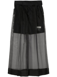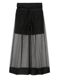 silk-overlay wide-leg trousers Highlights - Black - Wool blend - Sheer overlay - Applique logo - Concealed front button, hook and zip fastening - Two rear jetted pockets - Wide leg Imported Composition Body: Polyester 50%, Wool 50% Front: Silk 100%