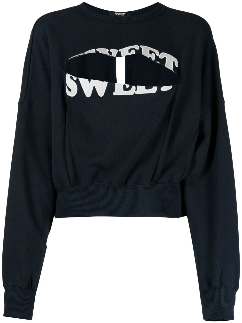 slogan-print cut-out detailing sweatshirt Highlights - Navy blue - Cotton - Slogan print to the front - Cut-out detailing - Keyhole detail to the rear - Round neck - Long sleeves - Elasticated cuffs - Elasticated hem - Straight hem Imported Composition Cotton 100% SIZE & FIT Model measurements Height 5 ft 10 in(1.77 m) Bust/Chest 31.88 in(81 cm) Hips 33.85 in(86 cm) Waist 24.01 in(61 cm) FittingInformation Designed to be unstructured, offering a loose fit throughout The elasticated waist allows for a comfortable fit Made from a midweight non-stretch fabric, this piece offers minimal elasticity when worn This piece fits small – take one size up Washing instructions Hand Wash