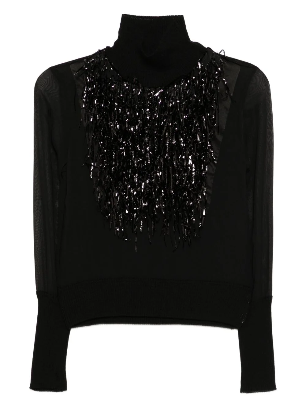 sparkle-tassel top Highlights - Black - Long sleeves - Mock neck Imported Composition Polyester 82%, Cupro 18% Outer: Silk 100% Washing instructions Dry Clean Only