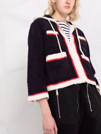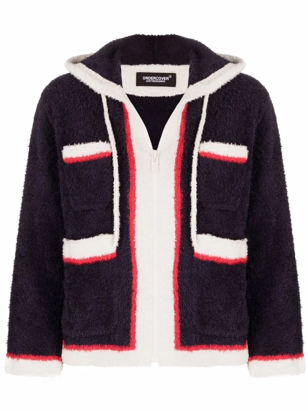 stripe-trim hooded jacket Japanese brand UNDERCOVER are famed for their contemporary aesthetic and laid-back design style, which are demonstrated by this jacket from their latest collection. Presented in a classic dark blue hue, the piece is finished with a colourful stripe trim for added appeal. Imported Composition Cotton 77%, Nylon 23% SIZE & FIT Model measurements Height 5 ft 10 in(1.78 m) Bust/Chest 29.52 in(75 cm) Hips 36.61 in(93 cm) Waist 24.4 in(62 cm) FittingInformation This piece fits true to size. We recommend you get your regular size Cut for a loose fit Made with a mid-weight fabric Washing instructions Dry Clean Only