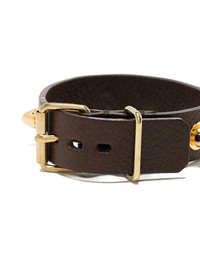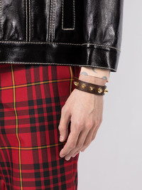 stud-detail leather cuff Constructed from brown calf leather, Japanese brand UNDERCOVER's adjustable cuff is adorned with gold-tone stud detailing, delivering 70s punk aesthetics and contemporary street style in equal measures. Imported SIZE & FIT Model measurements Height 6 ft 0 in(1.84 m) Bust/Chest 35.43 in(90 cm) Hips 35.82 in(91 cm) Waist 28.74 in(73 cm) Measurement CIRCUMFERENCE 6.73 in(17.1 cm) WIDTH 0.78 in(2 cm)