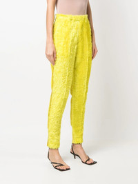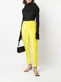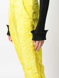 textured high-waisted trousers yellow cotton/silk panelled design textured finish high-waisted belt loops concealed front fastening slip pockets to the sides rear welt pocket rear flap pocket tapered leg slim cut Imported Composition Cotton 100%, Silk 100%, Polyester 100% SIZE & FIT Model measurements Height 5 ft 9 in(1.76 m) Bust/Chest 33.07 in(84 cm) Hips 34.64 in(88 cm) Waist 25.59 in(65 cm) FittingInformation This piece fits true to size. We recommend you get your regular size Cut for a slim fit Made with a mid-weight non-stretch fabric Washing instructions Dry Clean Only