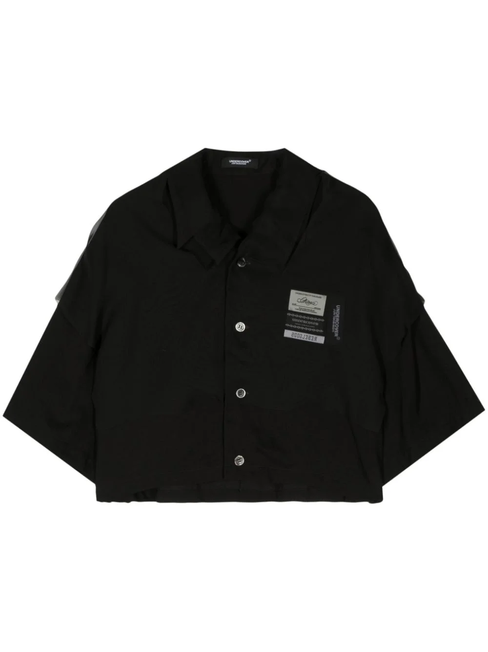 name-tag button-up shirt Highlights - Jet black - Georgette crepe - Name tag collage - Applique logo - Notched collar - Front button fastening - Drop shoulder - Short sleeves - Straight hem Imported Composition Outer: Polyester 100% Lining: Rayon 100% Washing instructions Dry Clean Only