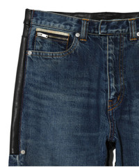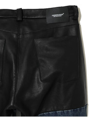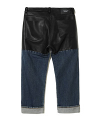 -Cowhide leather switching denim pants -Distressed denim -Patch pocket on hip -Rivet and zip pocket on front -Back roll-up design MATERIAL SURFACE1: 100% COTTON SURFACE: COWHIDE