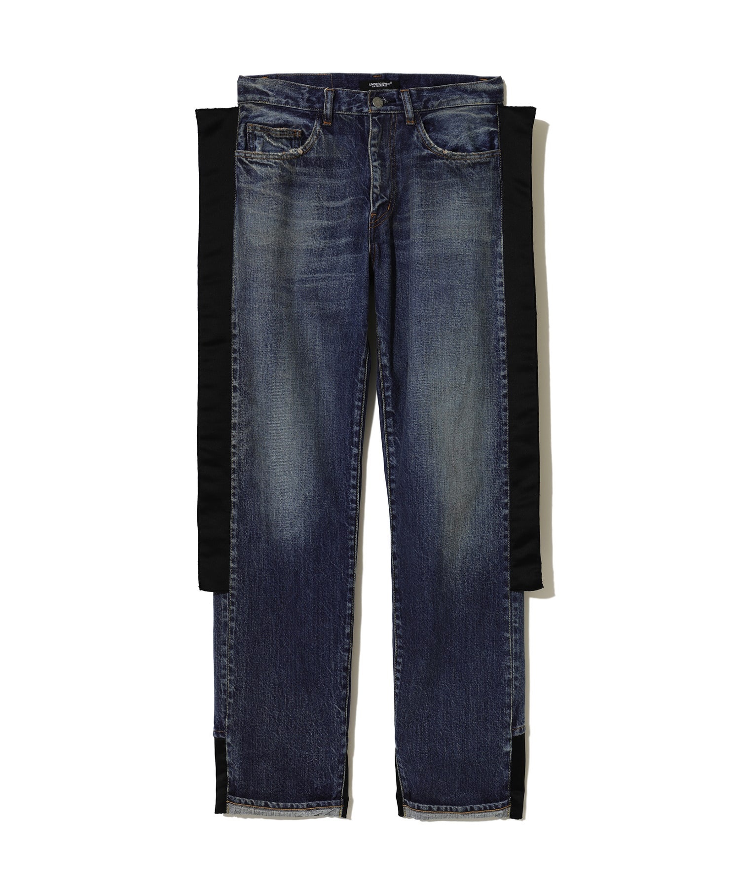 -Distressed denim pants -Satin parts on sides and hem -Back patch pocket and logo patch MATERIAL SURFACE1: 100% COTTON PARTLY2: 90% POLYESTER,10% SILK