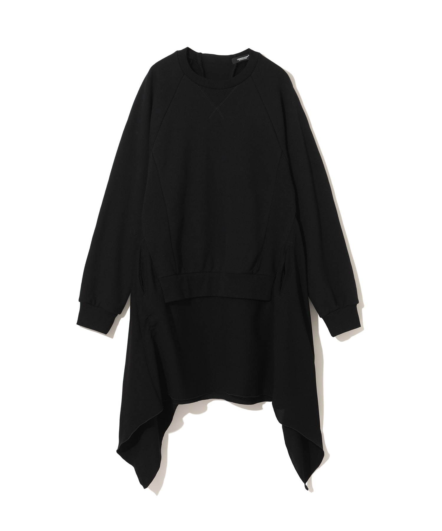 -Cotton sweat dress -Georgette switching design -Slit pocket on the front MATERIAL SURFACE: 100% COTTON PARTLY: 100% POLYESTER PARTLY2: 90% POLYESTER, 10% SILK