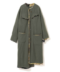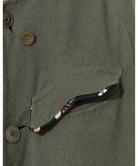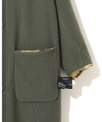 - Yak wool long coat - Front flap and patch pockets - Silk and silk-cotton accents - Side and back tags - Cupro lining MATERIAL 100% WOOL(YAK) PARTLY1: 100% SILK PARTLY2: 70% COTTON, 30% SILK FILLING: 100% POLYESTER LININNG: 100% CUPRO