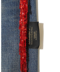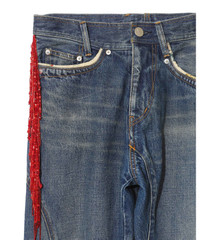 - Distressed jeans - Beaded fringe and tag on the side - Beaded embroidery on the front - Patch pocket and patch on the back MATERIAL 100% COTTON PARTLY: 100% COTTON FILLING: 100% POLYESTER