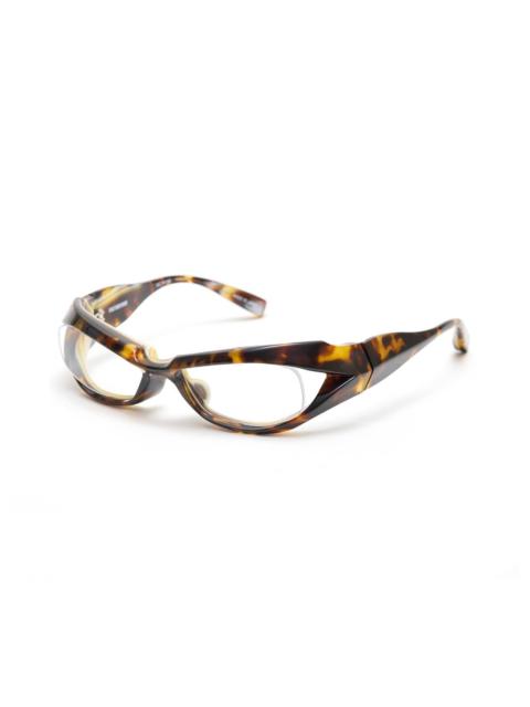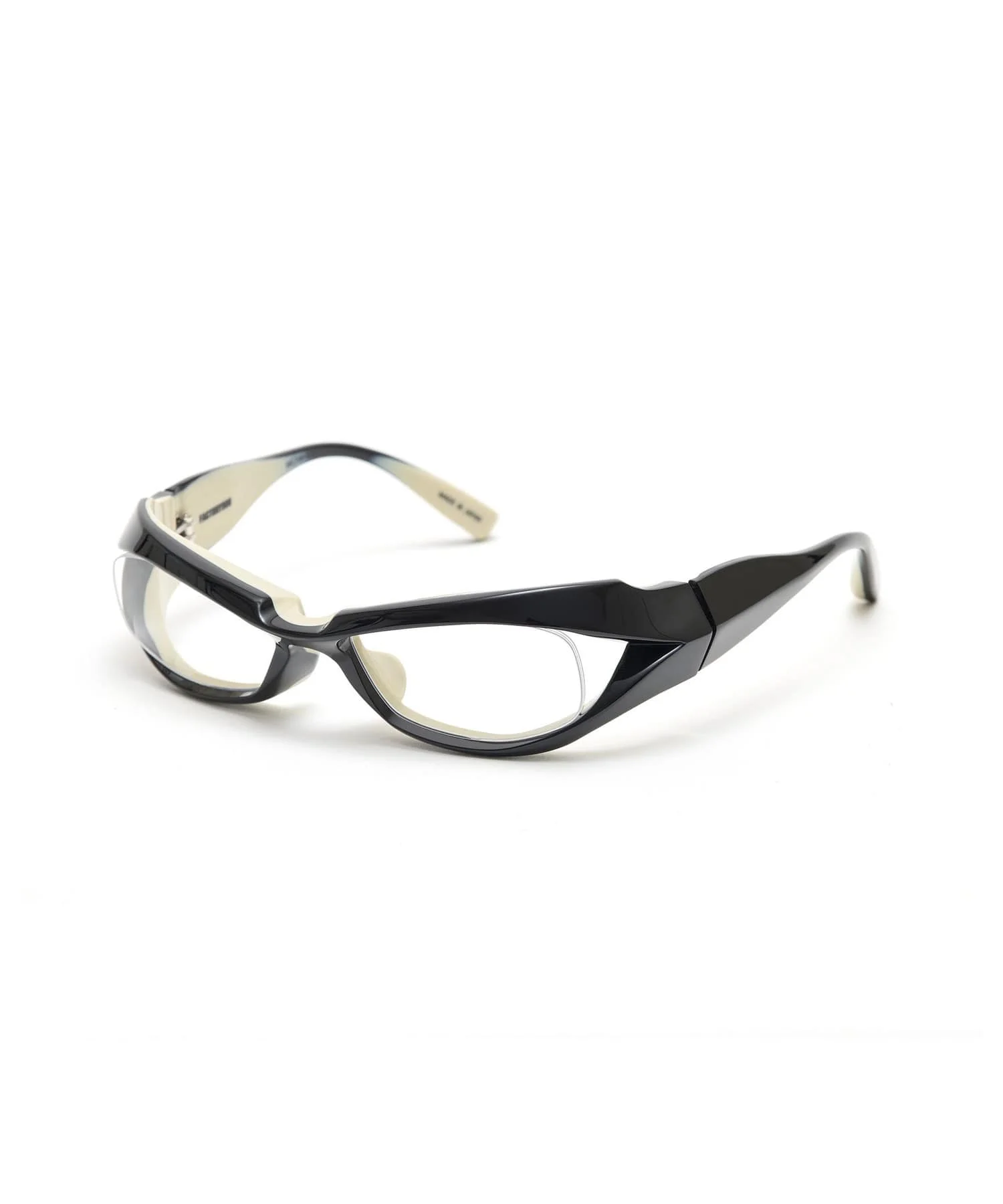 UNDERCOVER × FACTORY900 COLLABORATION PRODUCT for 25AW WOMEN’S COLLECTION MODEL: FA-240 The “FA-240,” one of FACTORY900’s best-selling models, is reintroduced in this collaboration in two special colorways: Black × Ivory and Demi × Brown Gradation. Crafted with ultra-thick acetate—14mm on the upper rim and 12mm on the sides—the design avoids a heavy, bulky impression through sharp, angular cutting at the endpiece, which highlights a beautifully refined line. From the bridge to the brow, the endpiece, and the temples, balanced contours create a sophisticated and harmonious design. MATERIAL FLAME: ACETATE RENZ: PLASTIC
