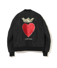 - Polyester padded MA-1 jacket - Embroidery on the back - Front welt pockets - Zippered sleeve pockets MATERIAL 100% POLYESTER FILLING: 100% POLYESTER LINING: 100% CUPRO RIB: 70% ACRYLIC, 30% WOOL