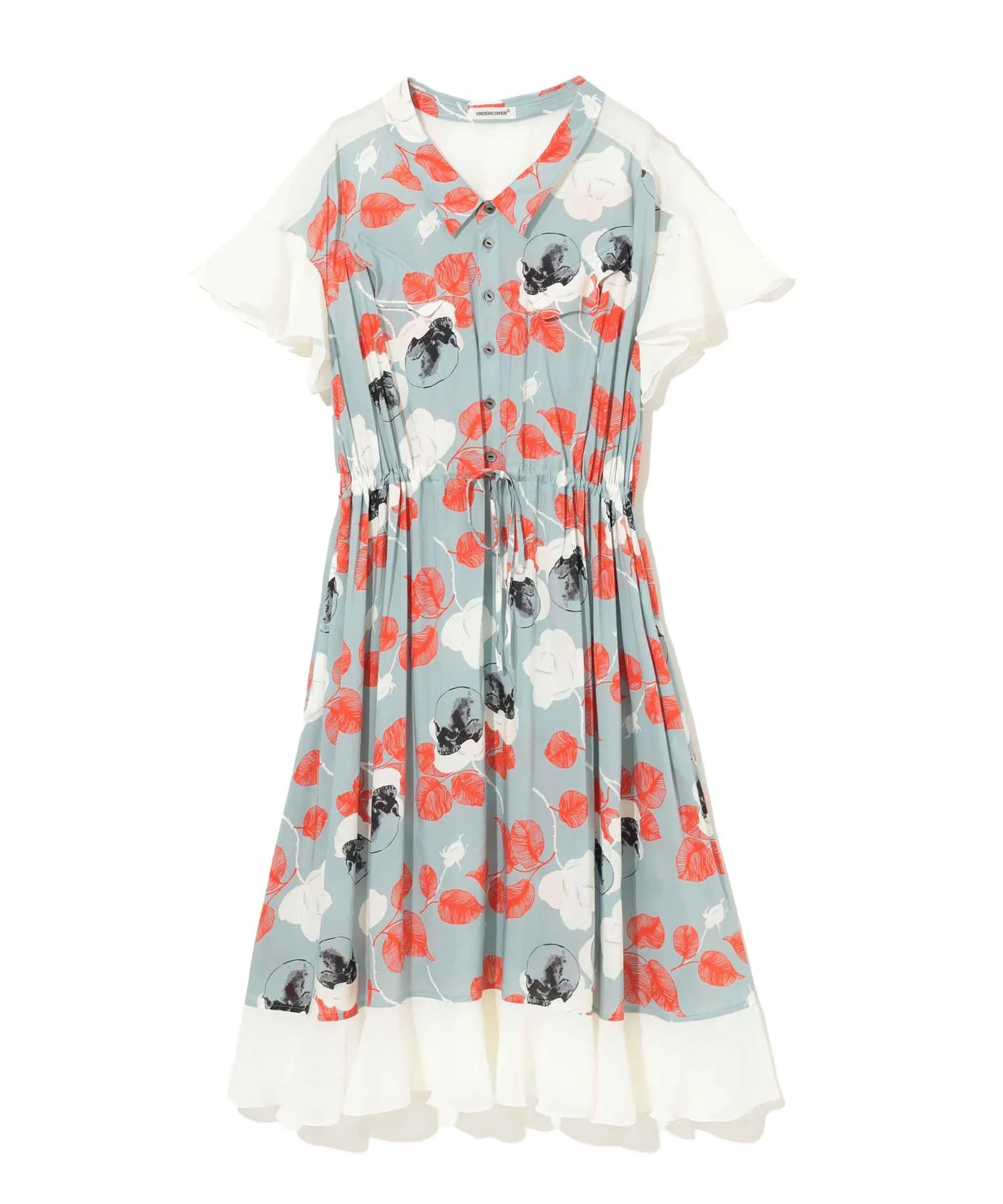 - Rayon all-over print gathered dress - Georgette accents - Drawstring waist MATERIAL 100% RAYON PARTLY: 100% POLYESTER