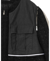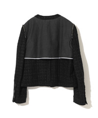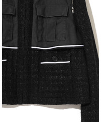 -Wool blend glitter tweed jacket -Cotton army vest switching -Front patch pockets -Cupra lining -Zipper on shoulder MATERIAL 43% ACRYLIC, 26% WOOL, 26% POLYESTER, 4% CUPRO, 1% NYLON PARTLY: 100% COTTON LINNING: 100% CUPRO