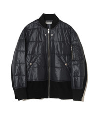 -Quilted blouson -Knit paneling -Front welt and zipper pockets MATERIAL SURFACE1: 100% NYLON SURFACE2: 65% WOOL, 25% ANGORA, 10% NYLON FILLING: 100% POLYESTER RIB: 70% ACRYLIC, 30% WOOL