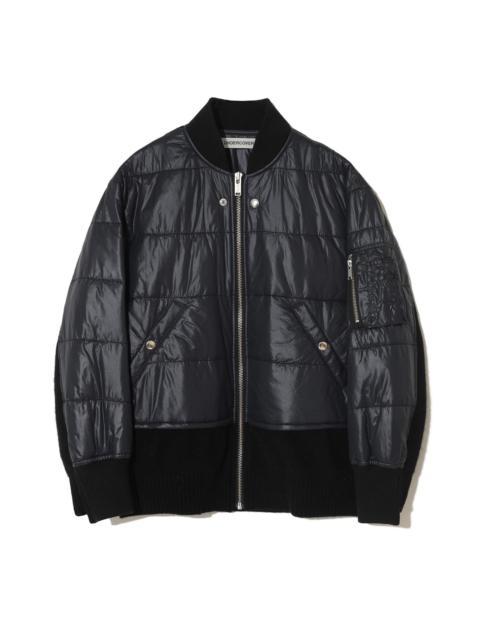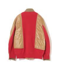 -Quilted blouson -Knit paneling -Front welt and zipper pockets MATERIAL SURFACE1: 100% NYLON SURFACE2: 65% WOOL, 25% ANGORA, 10% NYLON FILLING: 100% POLYESTER RIB: 70% ACRYLIC, 30% WOOL