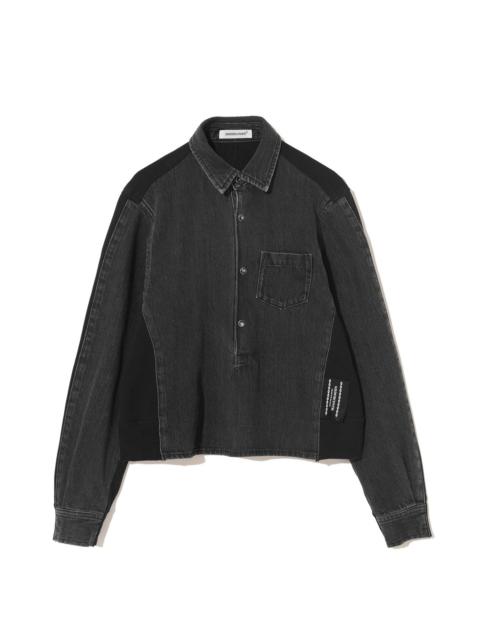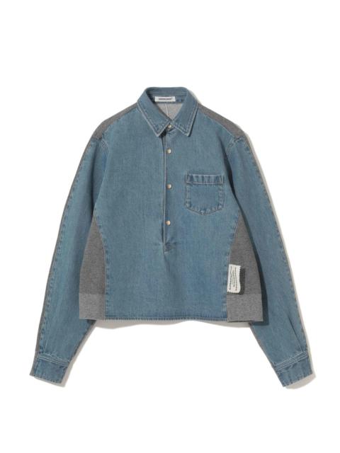 -Cotton fleece sweatshirt with textured denim pullover -Fabric tag and patch pocket on the front -Snap buttons MATERIAL 100% COTTON RIB: 95% COTTON, 5% POLYURETHANE