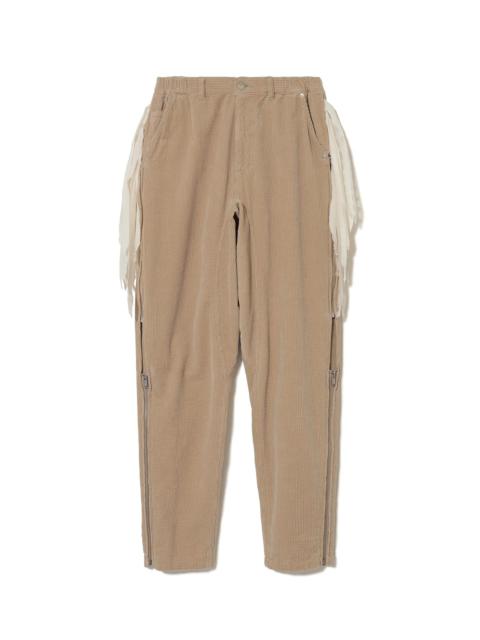 -Cotton corduroy pants -Side zipper -Chiffon fringe on the sides -Elastic waist -Back patch pocket MATERIAL 100% COTTON PARTLY: 75% POLYESTER, 10% COTTON, 10% RAYON 5% LINEN