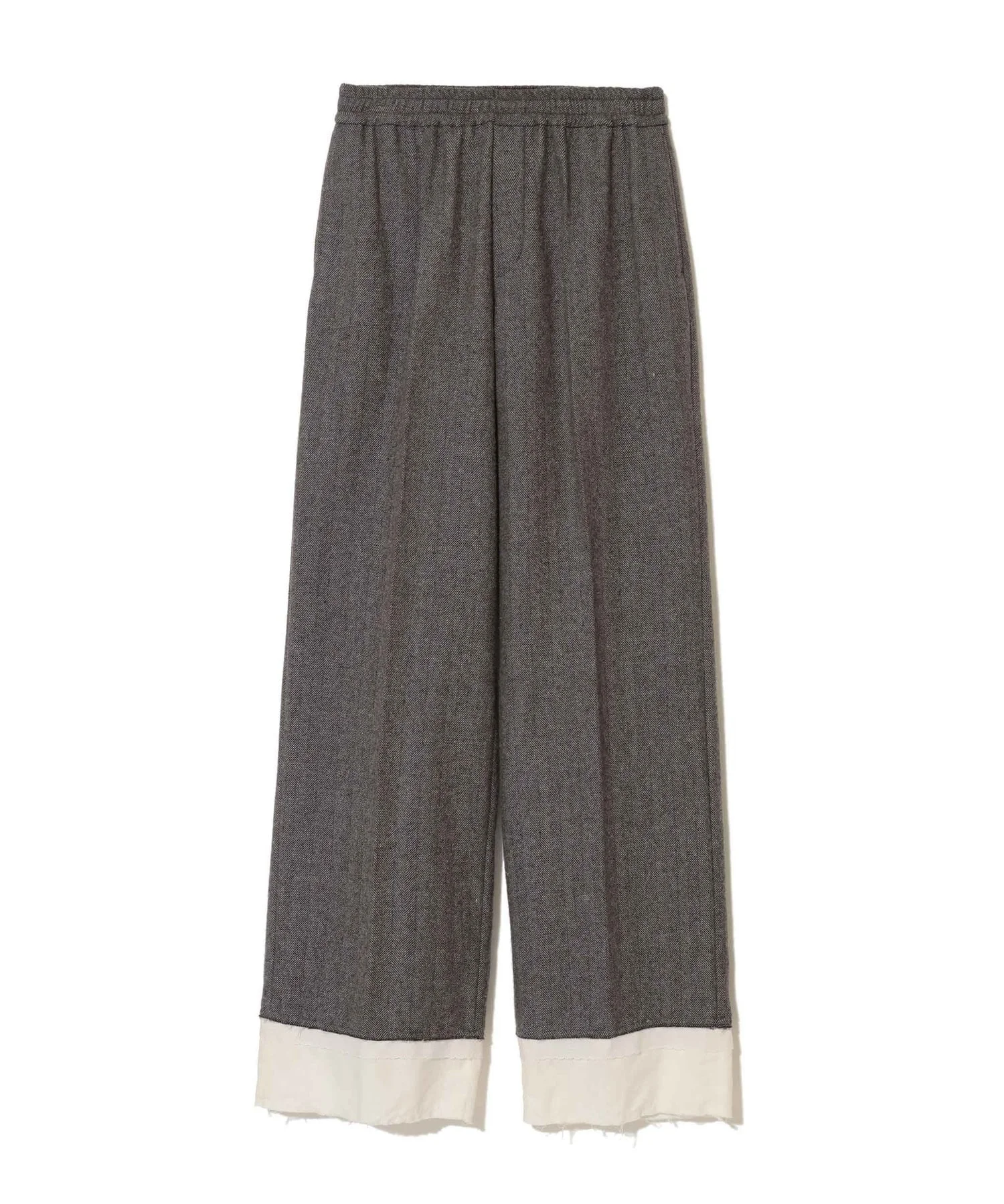 -Wool blend herringbone slacks -Layered hem design -Elasticated waist -Back welt and flap pockets -Cupra lining MATERIAL 72% WOOL, 20% POLYESTER, 4% ACRYLIC, 4% NYLON PARTLY1: 100% COTTON PARTLY2: 90% COTTON, 10% NYLON LINNING: 100% CUPRO