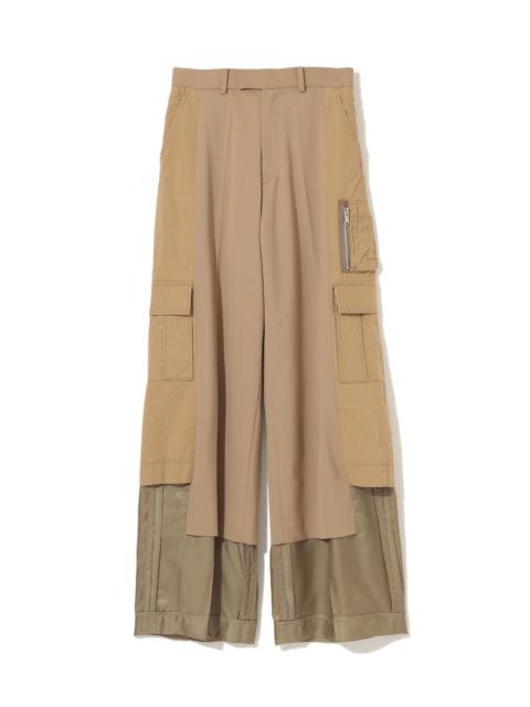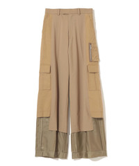 -Wool-blend polyester slacks -Cotton army pants with switching -Cupra lining -3D pockets and zipper pockets on the sides -Welt pockets on the back MATERIAL 68% POLYESTER, 32% WOOL PARTLY: 100% COTTON LINNING: 100% CUPRO