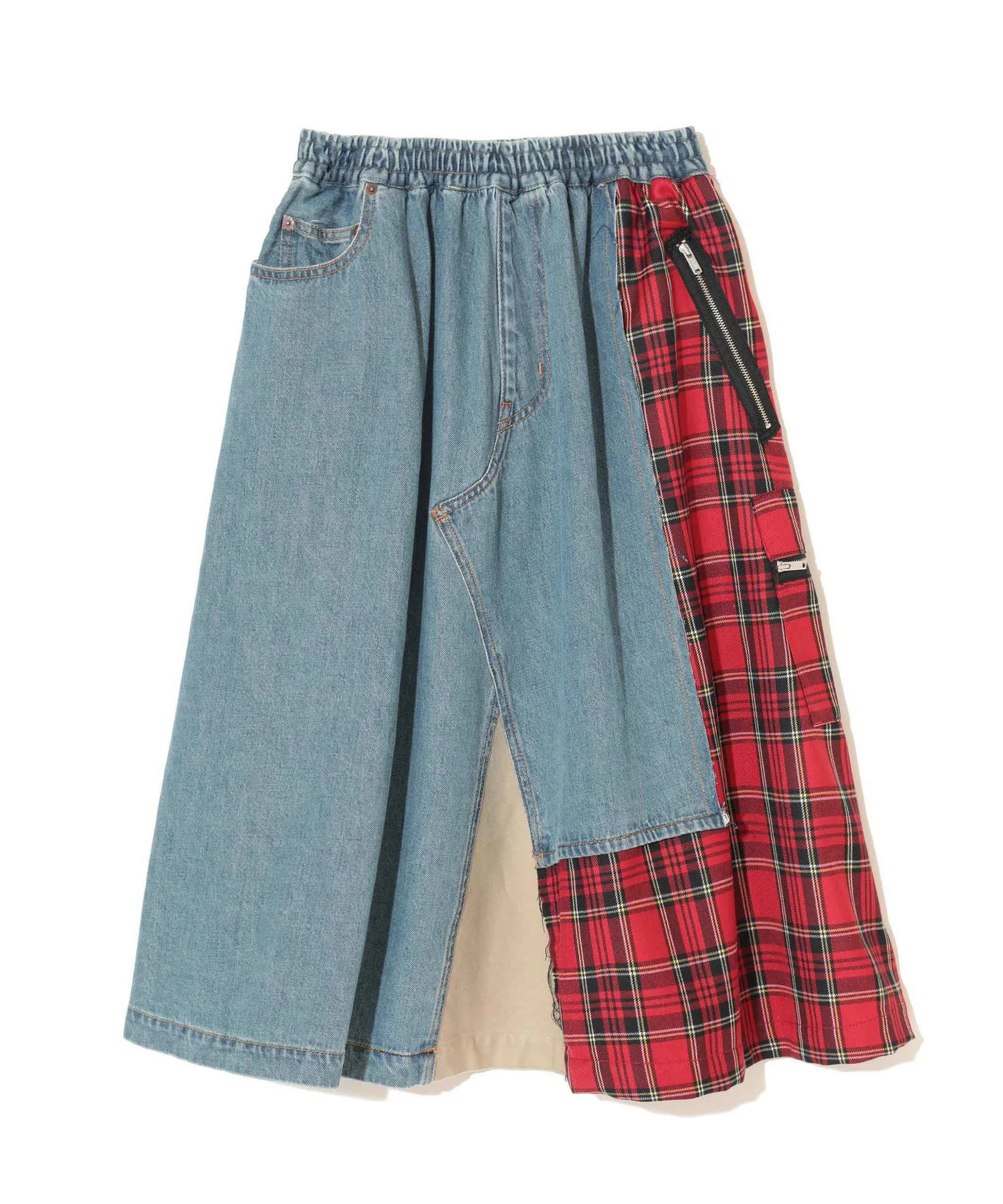 -Processed denim and wool-blend check skirt -Denim skirt with patch pockets and tabs -Check skirt with zipper pockets -Elastic waist MATERIAL 100% COTTON PARTLY: 51% POLYESTER, 49% WOOL PARTLY2: 100% COTTON