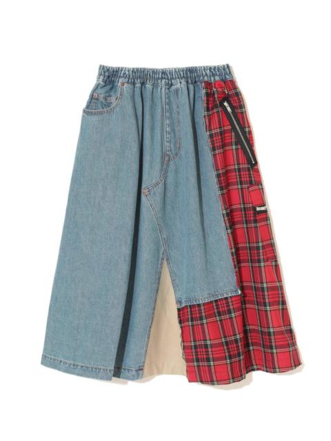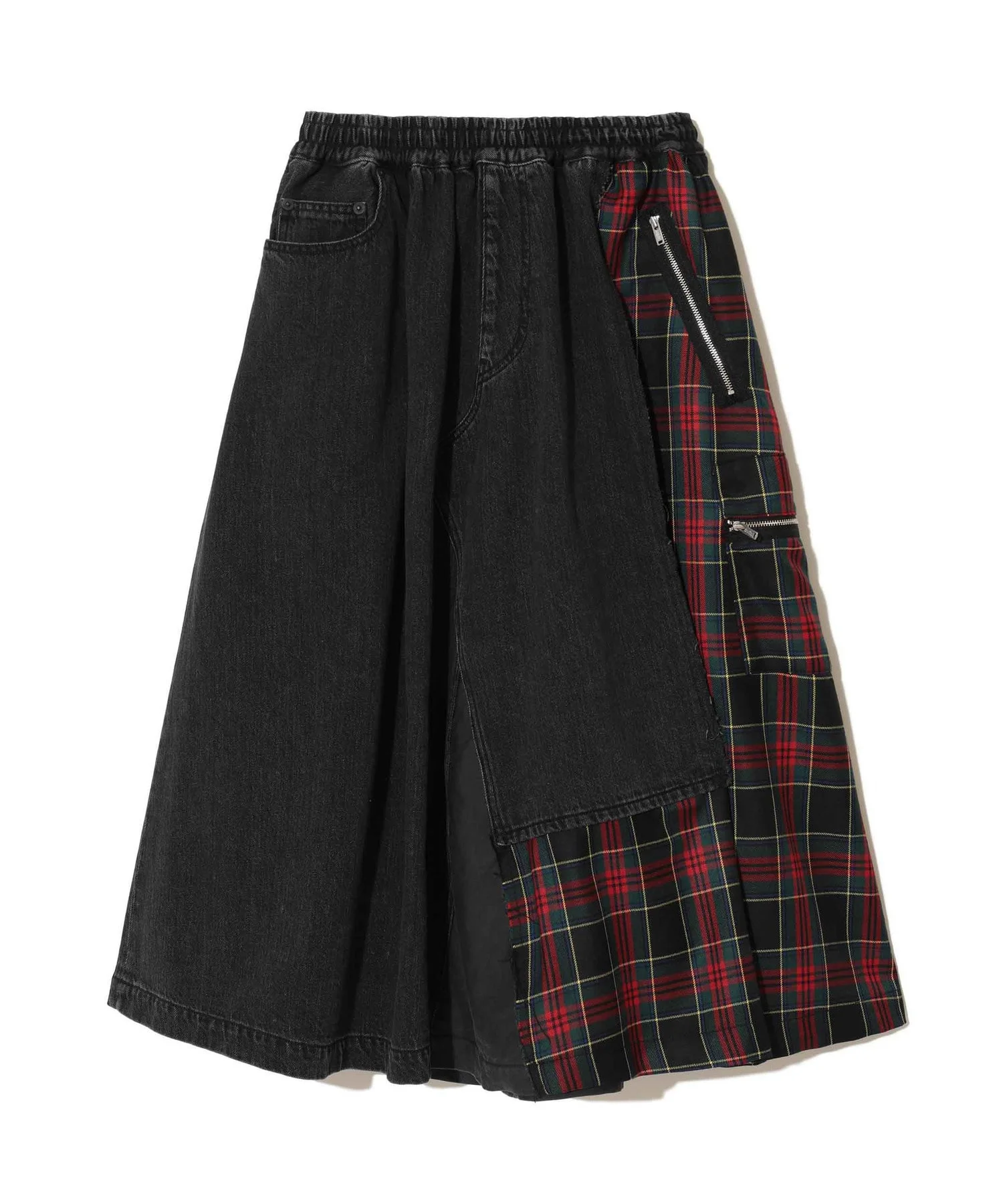 -Processed denim and wool-blend check skirt -Denim skirt with patch pockets and tabs -Check skirt with zipper pockets -Elastic waist MATERIAL 100% COTTON PARTLY: 51% POLYESTER, 49% WOOL PARTLY2: 100% COTTON
