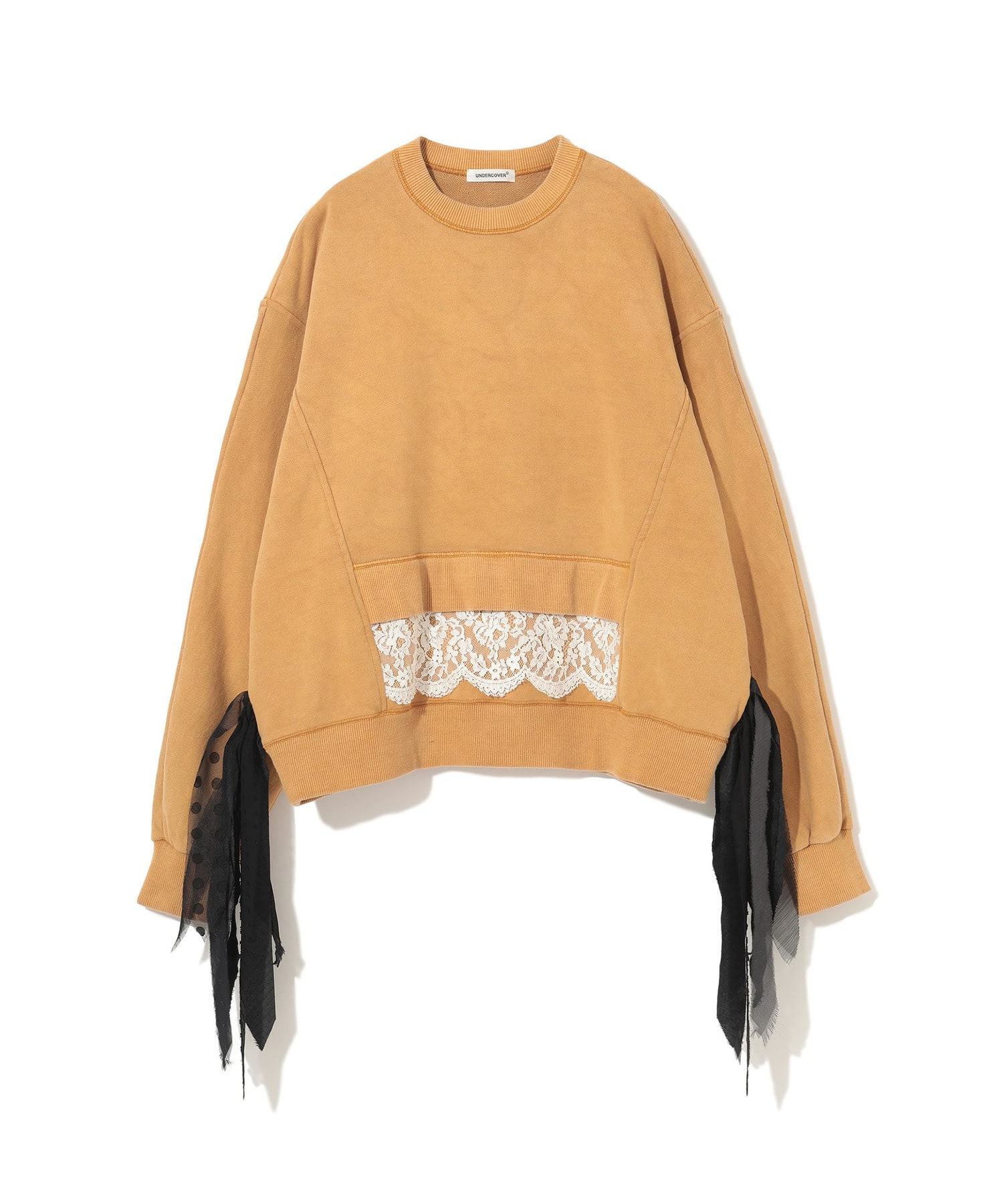-Cotton sweatshirt pullover -Lace front detail -Chiffon fringe on the sides MATERIAL 100% COTTON PARTLY: 75% POLYESTER, 10% COTTON, 10% RAYON, 5% LINEN RIB: 95% COTTON, 5% POLYURETHANE