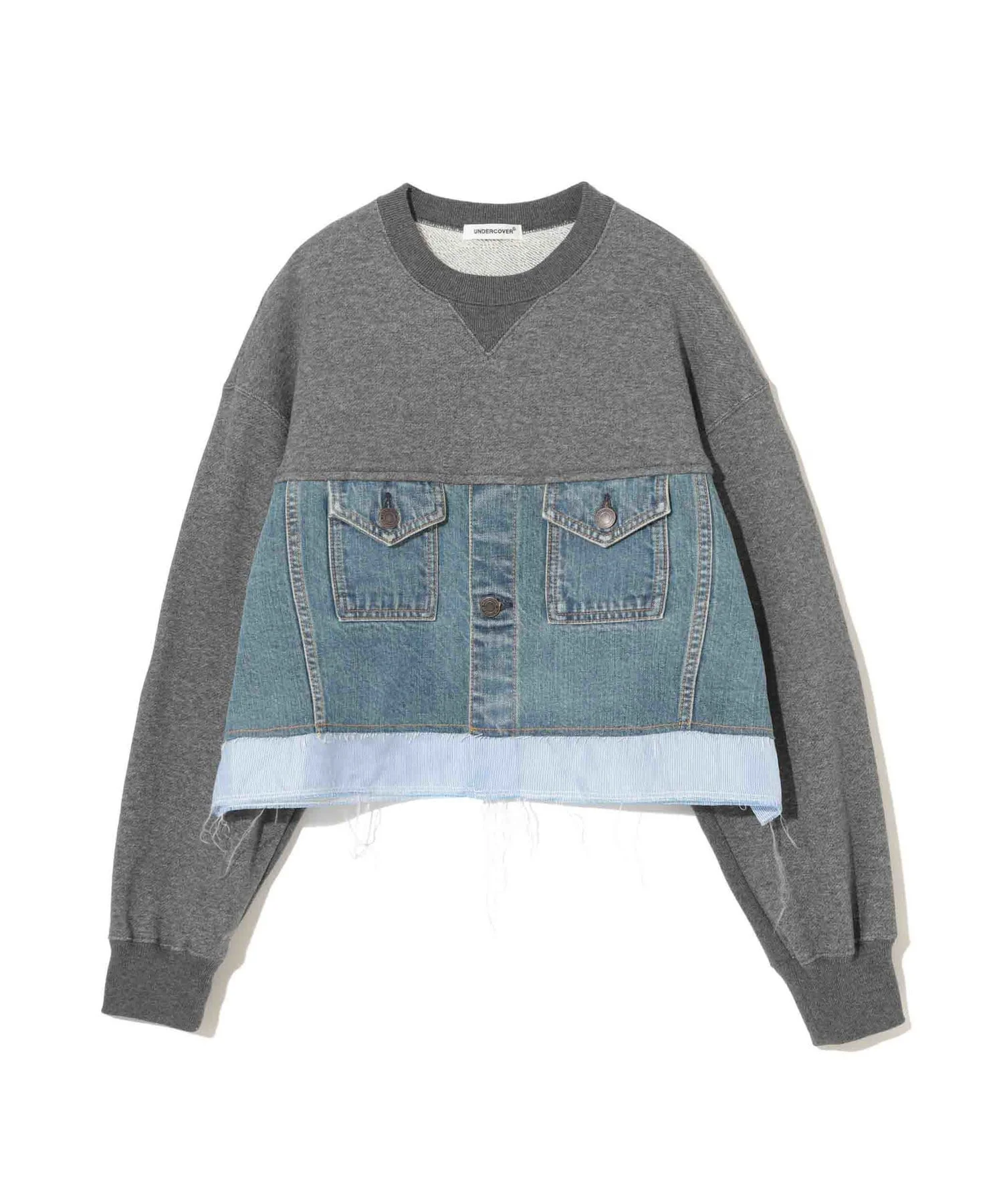 -Processed denim jacket and cotton sweatshirt pullover -Front flap pockets -Cupro hem MATERIAL SURFACE1: 100% COTTON SURFACE2: 100% COTTON SURFACE3: 100% CUPRO RIB: 100% COTTON