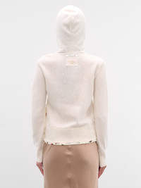 White Wool-Angora Hooded Sweater