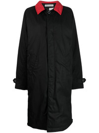 x FRGMT logo-print parka coat Highlights - Black/rose red - Cotton - Logo print to the rear - Contrasting collar - Concealed front button fastening - Side zip fastening - Long raglan sleeves - Buttoned cuffs - Two front welt pockets - Central rear vent - Straight hem - Logo-print lining Imported Composition Lining: Polyester 100% Trims: Polyester 100% Filling: Polyester 100% Outer: Cotton 100% Washing instructions Dry Clean Only