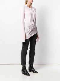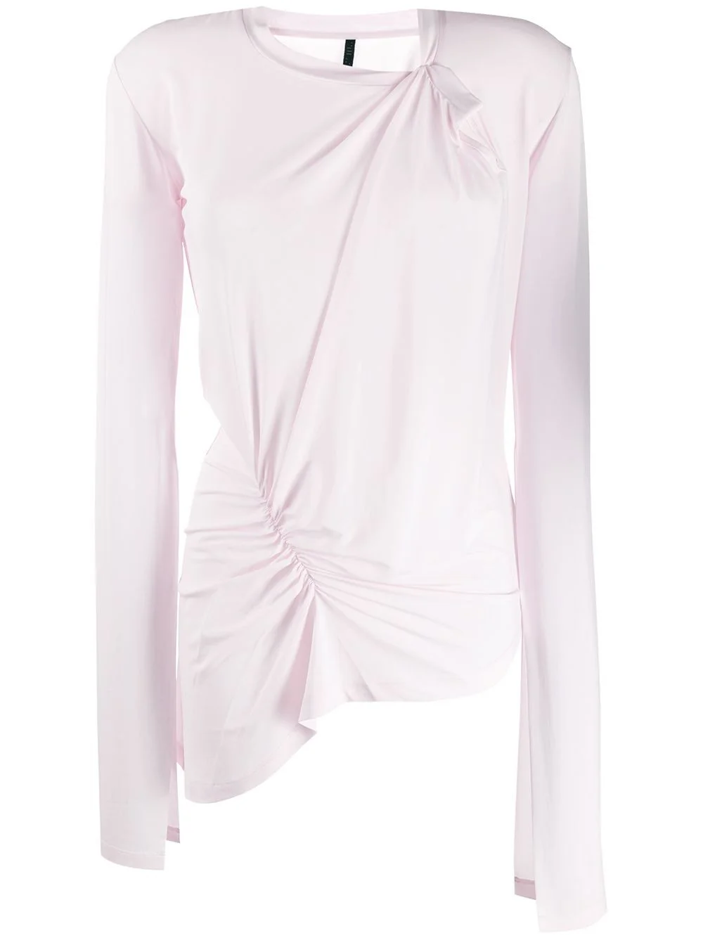 asymmetric long sleeve top Pale pink asymmetric long sleeve top from Unravel featuring a key-hole neckline, long sleeves, pleated details and an asymmetric hem. Made in Italy Composition Viscose 95%, Spandex/Elastane 5% SIZE & FIT Model measurements Height 5 ft 10 in(1.78 m) Bust/Chest 32.67 in(83 cm) Hips 35.82 in(91 cm) Waist 24.01 in(61 cm) FittingInformation This piece fits true to size. We recommend you get your regular size Cut for a slim fit Made with a lightweight stretch fabric Washing instructions Machine Wash