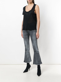 asymmetric sleeve twisted scoop neck tank Black silk asymmetric sleeve twisted scoop neck tank with placement print detail from Unravel. Made in Italy Composition Silk 100% SIZE & FIT Model measurements Height 5 ft 10 in(1.79 m) Bust/Chest 33.07 in(84 cm) Hips 35.82 in(91 cm) Waist 24.8 in(63 cm) Washing instructions Dry Clean Only