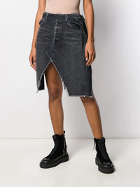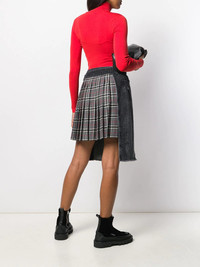denim and plaid asymmetric skirt Black, grey and red cotton and virgin wool denim and plaid asymmetric skirt from Unravel featuring a concealed front fastening, a belted waist, a front slit, a plaid print and pleated details. Made in Italy Composition Cotton 100%, Virgin Wool 97%, Polyamide 3% SIZE & FIT Model measurements Height 5 ft 10 in(1.79 m) Bust/Chest 33.46 in(85 cm) Hips 35.43 in(90 cm) Waist 25.19 in(64 cm) FittingInformation This piece fits true to size. We recommend you get your regular size Cut for a relaxed fit Made with a mid-weight fabric Washing instructions Dry Clean Only