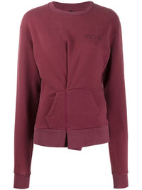 folded detail sweatshirt Bordeaux cotton folded detail sweatshirt from Unravel featuring a logo to the chest, a ribbed crew neck, a kangaroo pocket, long sleeves and a ribbed hem and cuffs. Made in Italy Composition Cotton 100% SIZE & FIT Model measurements Height 5 ft 9 in(1.76 m) Bust/Chest 31.88 in(81 cm) Hips 37 in(94 cm) Waist 24.4 in(62 cm) FittingInformation This piece fits true to size. We recommend you get your regular size Cut for a slim fit Made with a mid-weight fabric