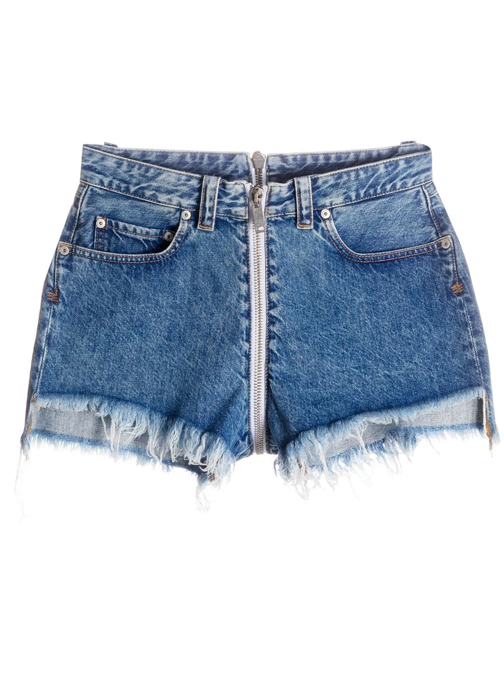 front-to-back raw denim shorts Going to the beach? Make sure you'll be at your best with these blue cotton blend front-to-back raw denim shorts from Unravel Project. Designed with an all-over zip fastening, they're the most practical piece to wear. Featuring a high waist, belt loops, a zip fastening, a five pocket design, raw edges and a short length. Made in Italy Composition Outer: Cotton 100% Lining: Polyester 65%, Cotton 35% Washing instructions Hand Wash